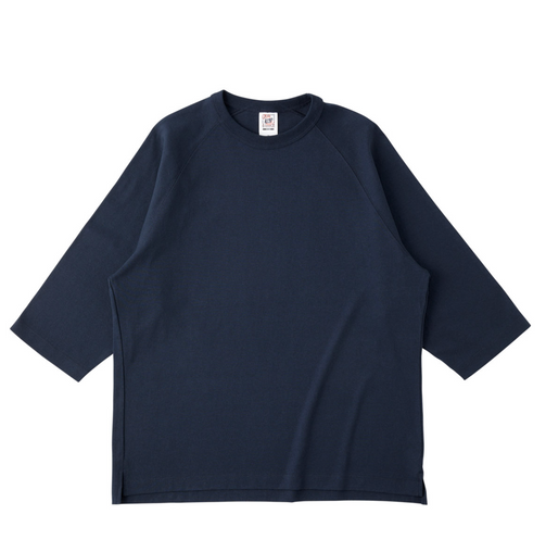 オープンエンド糸を使用したリラックスシルエットのラグラン7分袖Tシャツ。オープンエンドの糸はふっくらとしておりボリュームがある一方で、ドライでザックリとした風合いです。襟ネームは簡単に手で切り取ることのできる素材を使用してます。【素材】綿100%※オープンエンド糸(空気紡績糸)使用※ホワイトのみ綿糸縫製